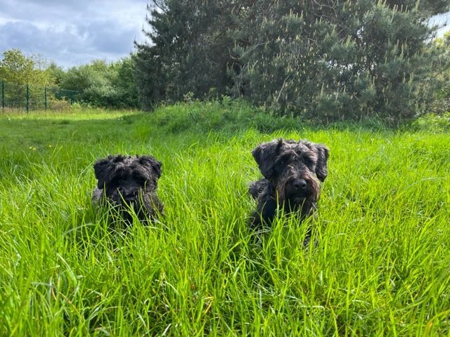 They have a lovely varied walk each day no matter the weather. They will get plenty of cuddles play and reassurance in our family home.